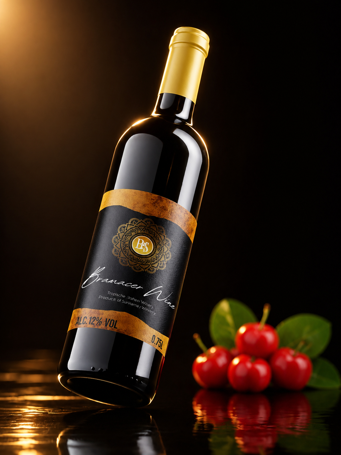 Bramacer Wine is a smooth and vibrant sweet fruit wine made from acerola cherry, bringing a bright tropical fruit expression suited to hospitality, gifting and celebrations across Suriname and beyond.