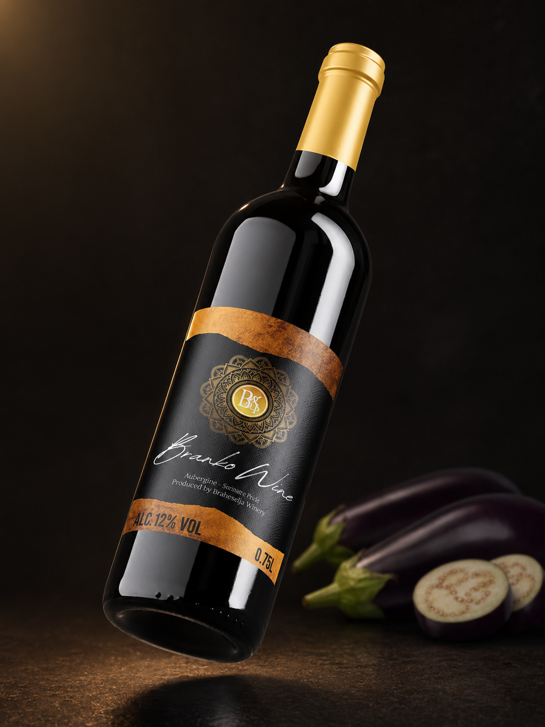 Branko Wine is a unique sweet fruit wine made from aubergine, locally known as boulanger. Unexpected, memorable and quietly luxurious — a true conversation piece for restaurants, gifting and special occasions.